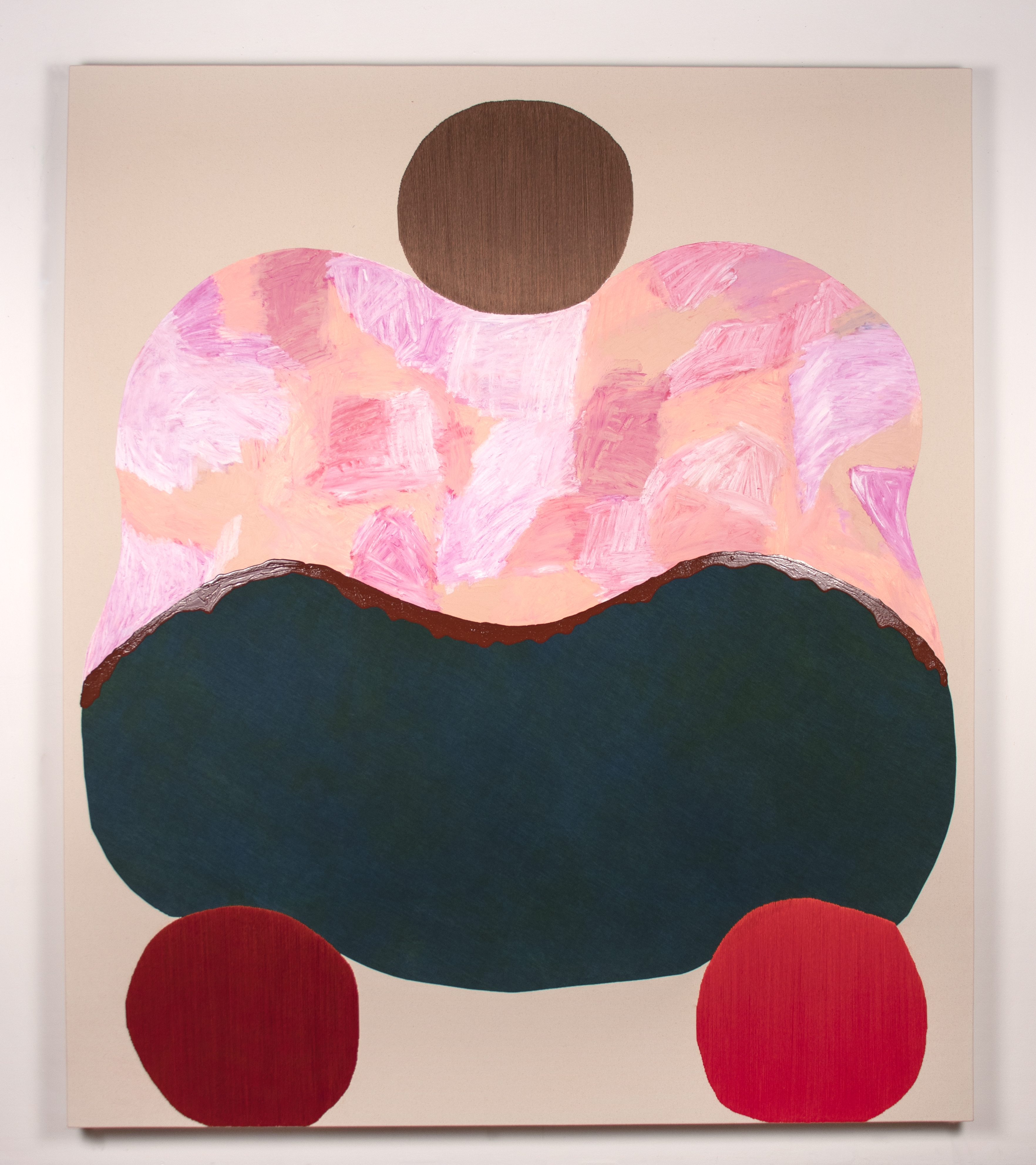Amanda Valdez uses fabric, embroidery, paint, and a sewing machine to make her paintings. Oscillating between abstraction and representation her shapes poke at everything human. She examines how painting can represent the physical experiences and stories of the body, using different modes of making to give a larger sense of time on a historic scale.